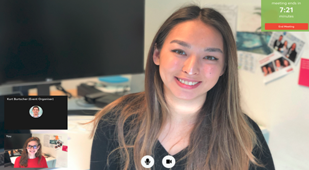 Please leave the call in time as you or your meeting partner can have a subsequent meeting right after. A watch is indicating the remaining meeting time. -