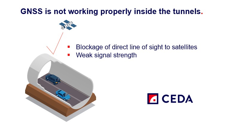 Navigation systems often fail in tunnels, causing stress, accidents, and inefficient traffic. CEDA Tunnel Positioning solves this with a simple, low-cost Bluetooth infrastructure that works directly with popular apps like Waze, Google Maps and other.