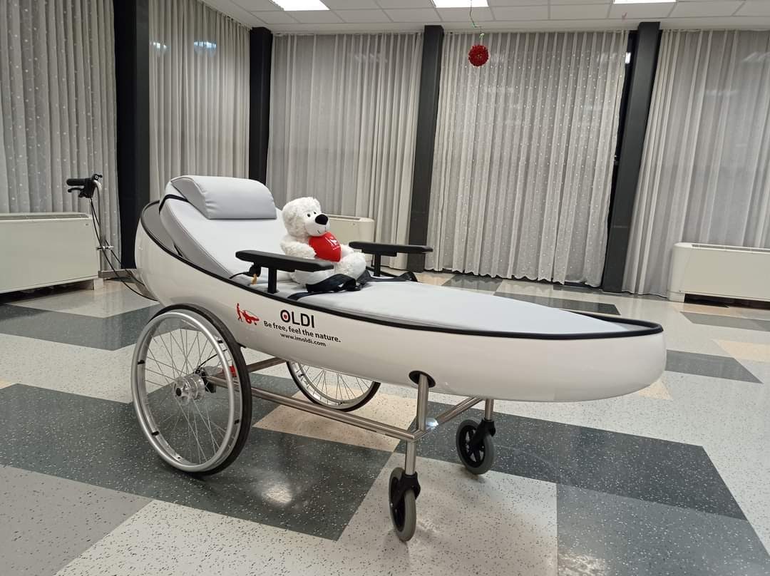 OLDI is a mobile bed on wheels (mobile bed / wheel bed) that enables people with mobility impairments or those who are bedridden to move safely outdoors and stay connected with nature and family.