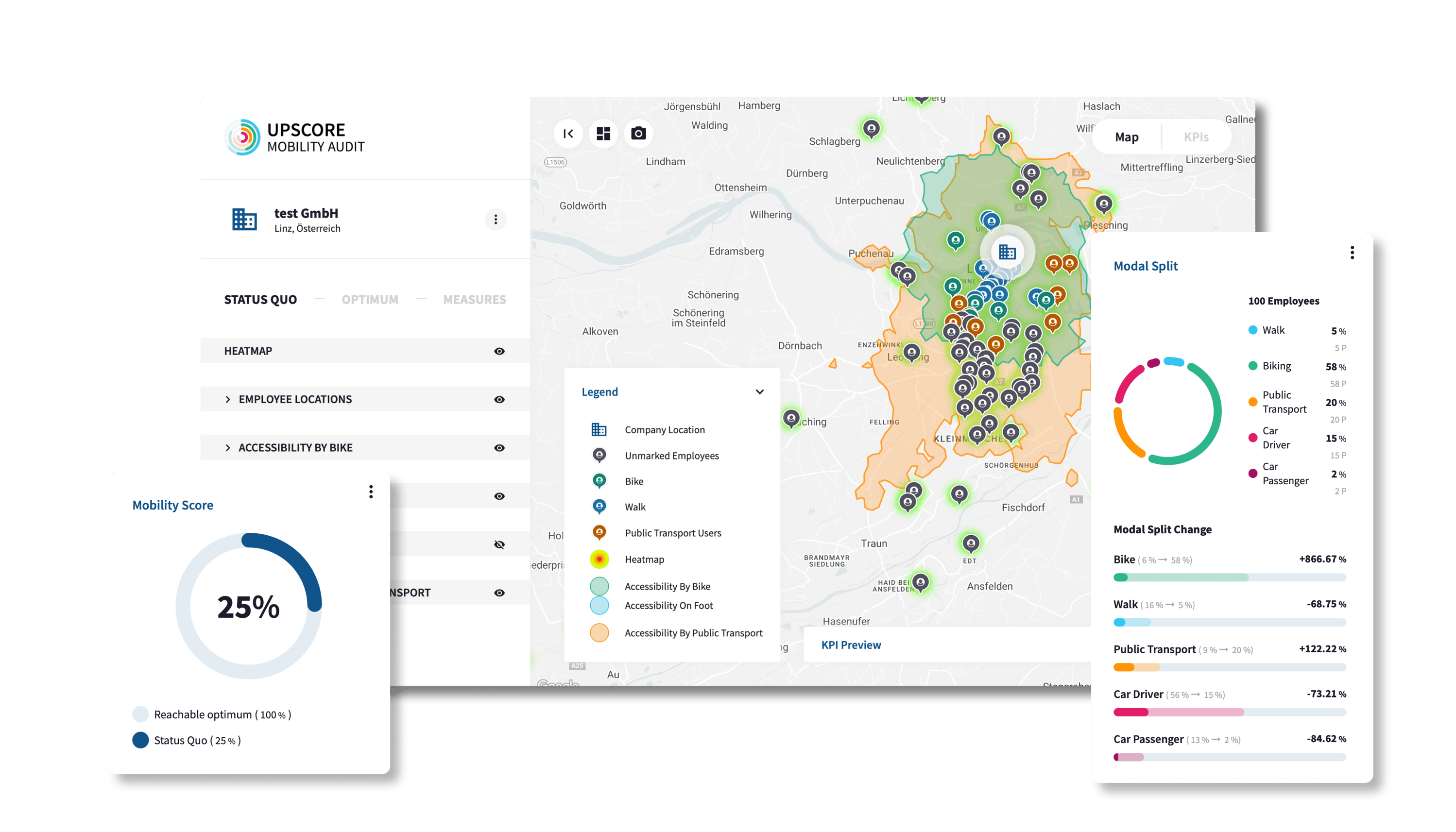 How can I improve my employees' commute? Should I provide electric scooters or company bicycles? Which vehicles in my fleet can I electrify? How much CO2 does our mobility emit? How many parking spaces do I need at the new company location?
